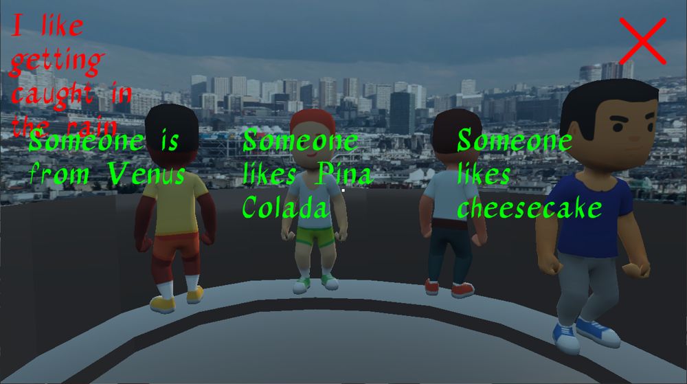 I decided to make a game about mending relationships by matching up people by their comments. It's called Amelie because I stole the premise from that movie.