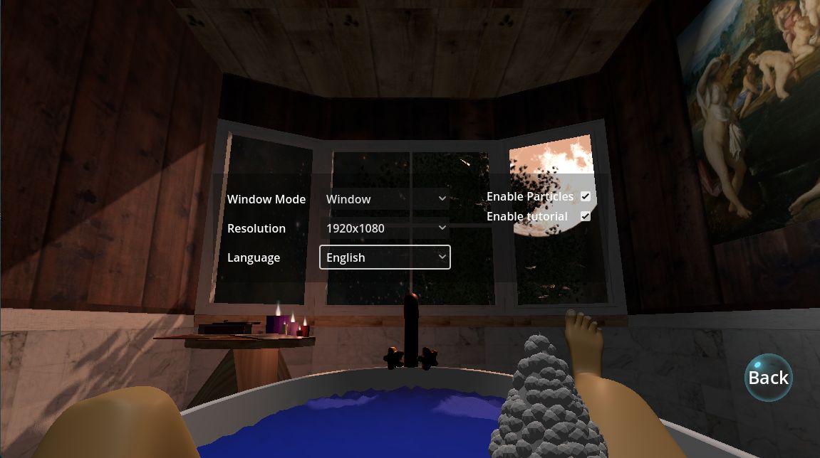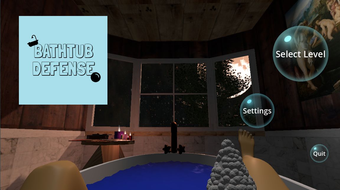 Gameplay is classic tower defense. Waves of enemies come towards you via a convoluted path. Tower placement happens through blowing bubbles containing the towers. Once a tower bubble is at the right place, player pops it to let the tower drop into place. We added a couple of interactions to the game world.The player can change the music by clicking the record player and toggle the candles. A secret key lets the player wiggle their toes.