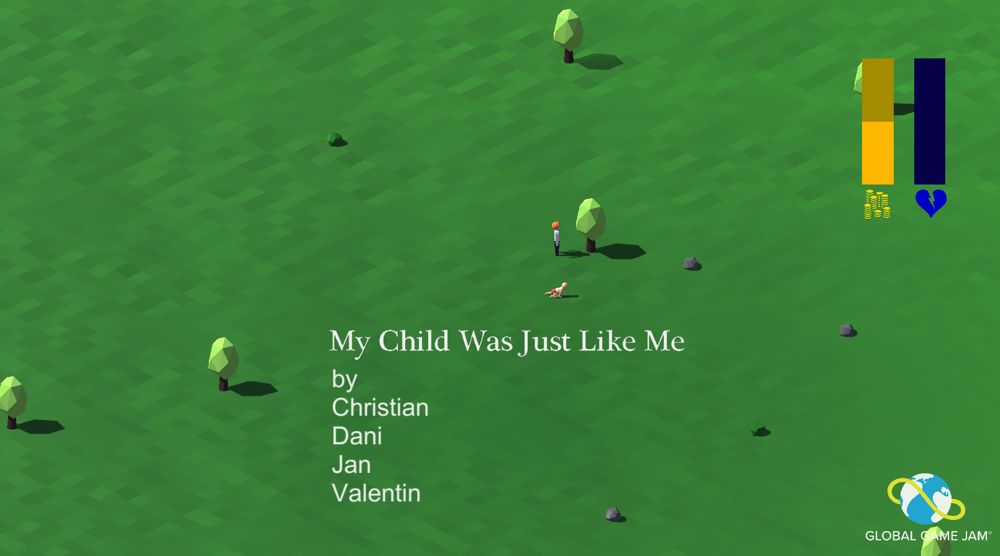 My first game jam where we used the Unity engine. It's a two player cooperative/competitive game of catch. The parent character takes care of the child character by earning money and providing toys and housing. The child character tries to leave. Both characters grow older until the parent character dies or the child leaves the play area. At that moment the child becomes the parent and the cycle begins anew. Despite the thought-provoking theme and serious overtones, play sessions proved to be hilarious.