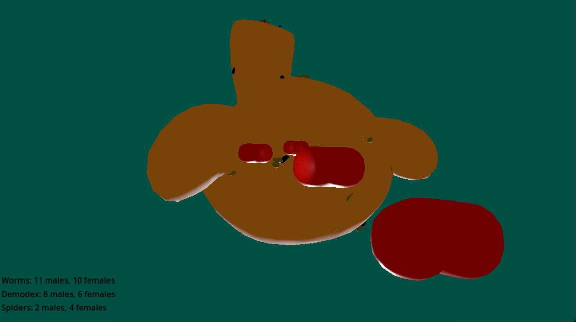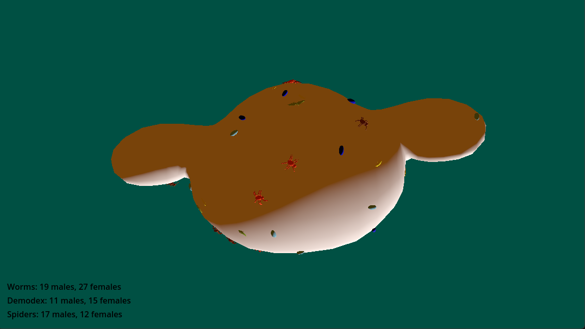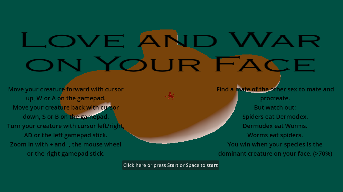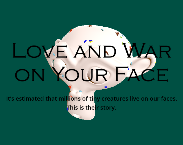I started with a simulation of creatures crawling across a face. Then I added the player controls and the added the basic interactions: Meet a creature of your own species and procreate. Meet another species and kill or be killed.