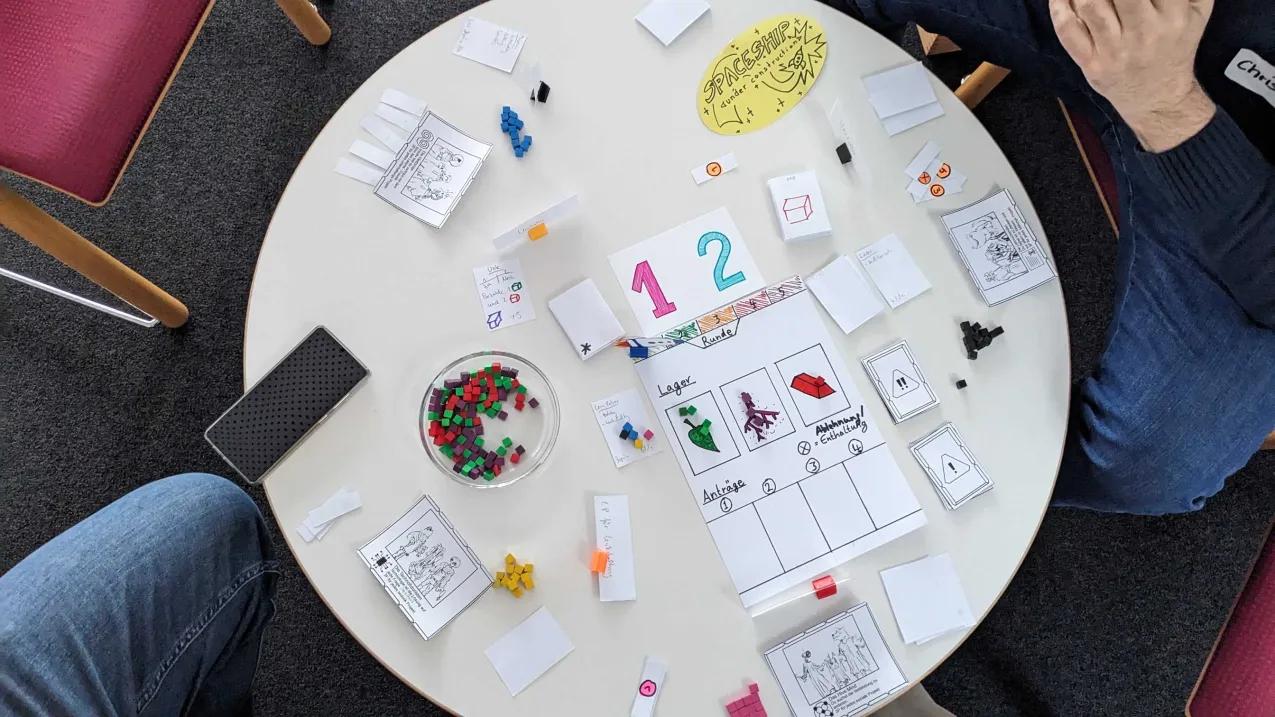 During the jam graphics and materials were quickly and crudely created with pen and paper.
